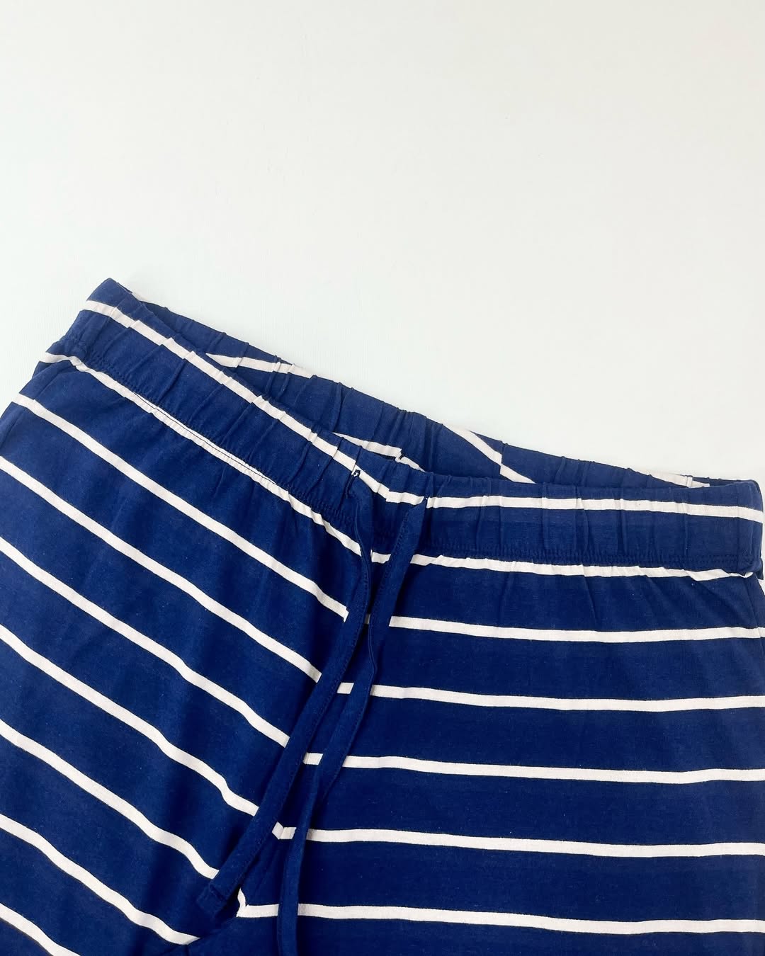 شلوار راه راه سورمه ای برای علاقه مندان به راه راه شلوار راحتی نخ پنبه ورداتی اورجینال کیفیت عالی سایزبندی: سایز ۱: عرض کمر ۴۰/ عرض ران ۳۳/ دور باسن ۱۱۲ (مناسب سایز ۴۴) سایز۲ : عرض کمر ۵۰/ عرض ران ۳۸/ دورباسن ۱۳۰ (مناسب سایز ۵۰ تا ۵۴) قد ۱۰۰ تا ۱۰۲ قی مت شلوار: ۳۸۹ ت برای لطفا