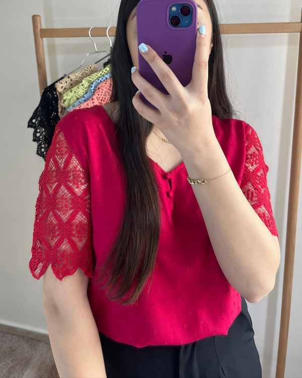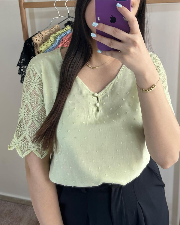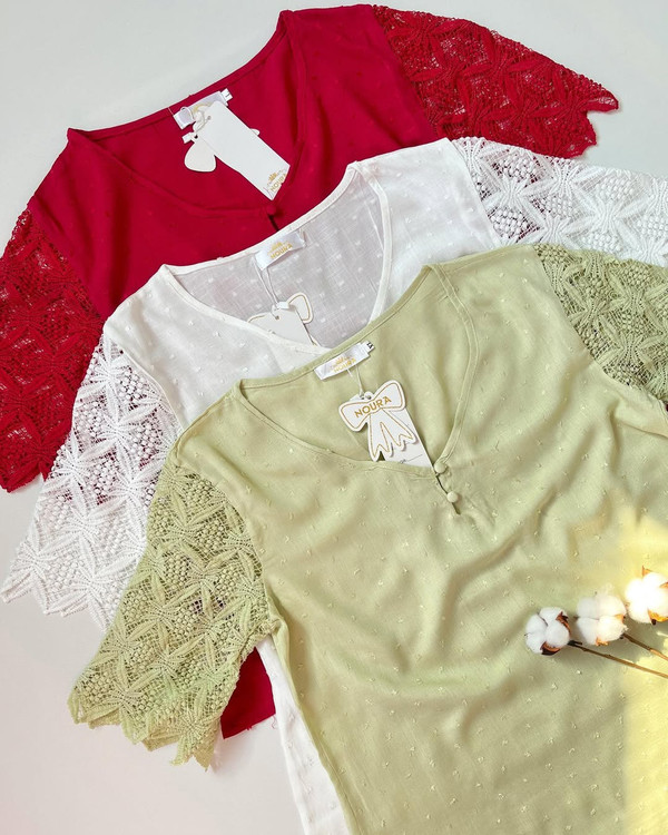 سلاااااامممم سلاااااممممممم شومیز آستین گیپور نخ وارداتی خنک و بسیار با کیفیت رنگ سفید: •مدیوم: دورسینه ۹۶، لارج: دورسینه ۱۰۰، دوایکس لارج: ۱۰۸ رنگ صورتی : •لارج: دورسینه ۱۰۰، ایکس لارج: ۱۰۴ رنگ کرم: •مدیوم: دورسینه ۹۶،لارج: دورسینه ۱۰۰ رنگ مرجانی: •مدیوم: دورسینه ۹۶ رنگ پسته ای : •ایکس لارج: دورسینه ۱۰۴ رنگ قرمز: •لارج: دورسینه ۱۰۰ رنگ مشکی: •دو ایکس لارج: دورسینه ۱۰۸ قد از ۶۸ قیم.ت برای شما: ۳۴۹ تو.مان برای لطفا